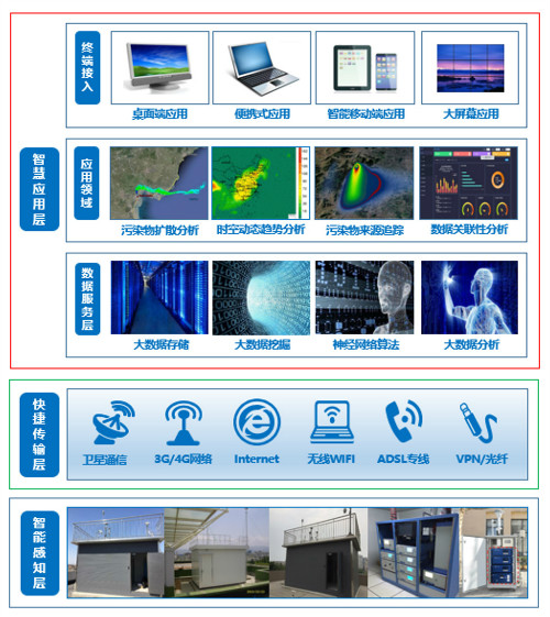 智慧服務(wù)層:以云計算、虛擬化和高性能計算等技術(shù)手段,整合和分析區(qū)域內(nèi)的環(huán)境信息,實(shí)現(xiàn)數(shù)據(jù)存儲、實(shí)時處理、深度挖掘和模型分析。建立面向?qū)ο蟮臉I(yè)務(wù)應(yīng)用系統(tǒng)和信息服務(wù)門戶,為環(huán)境質(zhì)量、污染防治、生態(tài)保護(hù)等業(yè)務(wù)提供“更智慧的決策”.