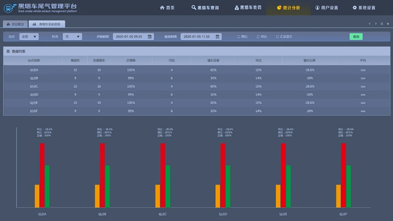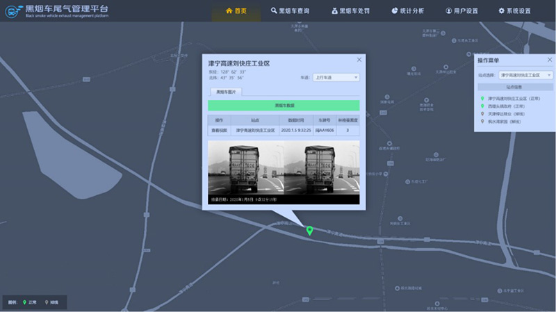 我司自主研發(fā)的黑煙車智能監(jiān)控管理平臺黑煙車查詢、黑煙車處罰、黑煙車數(shù)據(jù)統(tǒng)計等多項功能于一體,通過在城區(qū)各典型地段合理布設(shè),形成在線監(jiān)控網(wǎng)絡(luò),結(jié)合網(wǎng)絡(luò)傳輸技術(shù)與環(huán)境監(jiān)測中心和車輛管理中心實行數(shù)據(jù)共享與結(jié)果顯示,為決策研究者及地區(qū)機(jī)動車尾氣污染控制措施指定提供科學(xué)依據(jù),從而達(dá)到對整個城市黑煙車污染進(jìn)行在線監(jiān)測的目的。