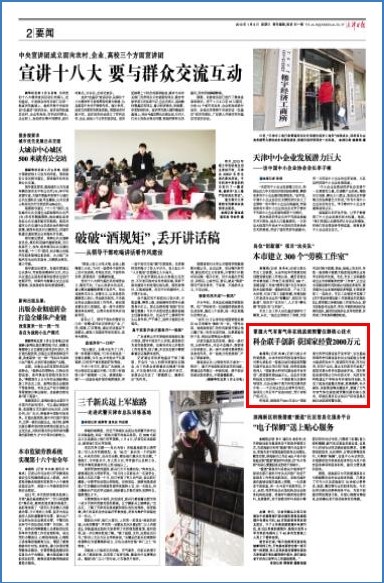 天津日報(bào):科企聯(lián)手創(chuàng)新 獲國家經(jīng)費(fèi)2000萬元