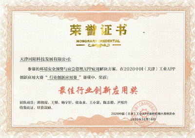 更新時間: 點擊:16152 所屬欄目:公司新聞 Update Time: Hits:16152 Belong Column:News10月16日, 由工業(yè)和信息化部、天津市人民政府主辦,天津市工業(yè)和信息化局、工業(yè)和信息化部電子第五研究所、中國工業(yè)技術(shù)軟件化產(chǎn)業(yè)聯(lián)盟承辦的2020工業(yè)技術(shù)軟件化發(fā)展論壇暨2020中國(天津)工業(yè)APP創(chuàng)新應(yīng)用大賽頒獎儀式在天津盛大召開。天津同陽科技發(fā)展有限公司憑借自主研發(fā)的《環(huán)境安全預(yù)警與應(yīng)急管理APP應(yīng)用解決方案》項目榮獲最佳行業(yè)創(chuàng)新應(yīng)用獎。