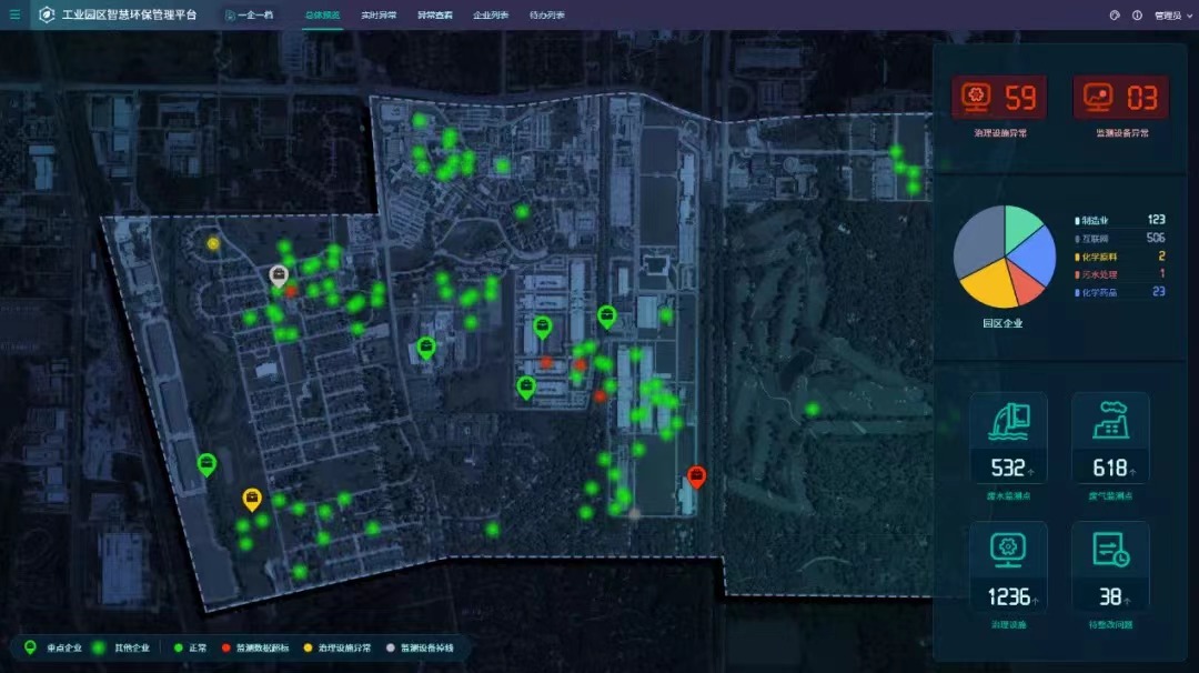 園區(qū)環(huán)境管理人員可通過平臺實現(xiàn)對園區(qū)污染物監(jiān)測信息的有效管理,能夠及時、快捷、便利地對各種監(jiān)測數(shù)據(jù)進行可視化監(jiān)控,并實現(xiàn)基礎信息的查詢、維護以及專題分析等多種功能。