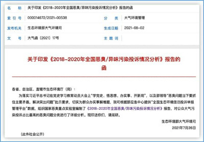 醫(yī)藥制造行業(yè)惡臭/異味投訴量:2018 年為 2872 件 2020 年為1985 件;